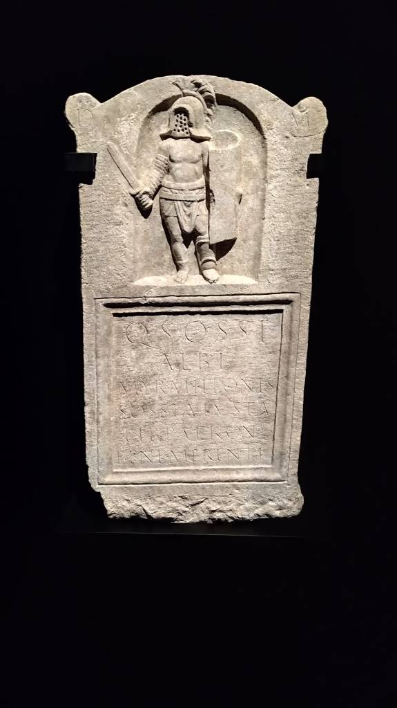 La literatura y el cine a menudo han tergiversado la realidad histórica. Pero es innegable que los munera o gladiadores fueron especialmente admirados y populares en Roma. La mayoría no vivían más allá de los treinta años y se conservan algunas de sus lápidas. En las salas del MARQ se exhibe alguna, y se han recreado varias luchas, con un imponente león saltando, con sus fauces abiertas, sobre la lanza de un intrépido luchador, con la cabeza vendada y ensangrentado.
